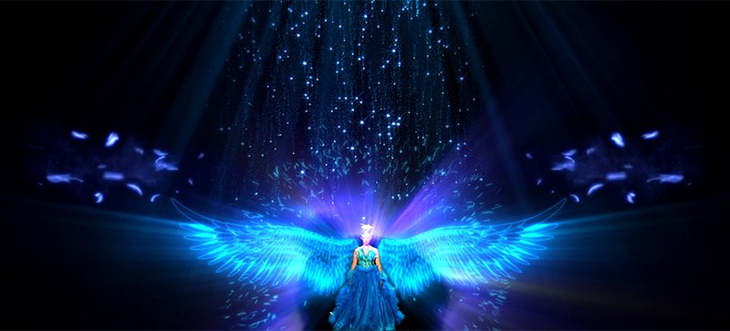 全息的魅力在于它營造了一個幻想世界,用“虛擬場景+真人”或者“真實場景+虛擬人”的模式,帶領觀眾進入虛擬與現實融合的雙重空間。利用觀眾的視覺錯位和現場的表演技巧,使全息的三維圖像與現實完美互動,這種方式通常稱為“蒙太奇手法”。虛擬與真實的拼接結合產生的巨大視覺沖擊,使人的感知和體驗猶如身臨其境,無法脫離。